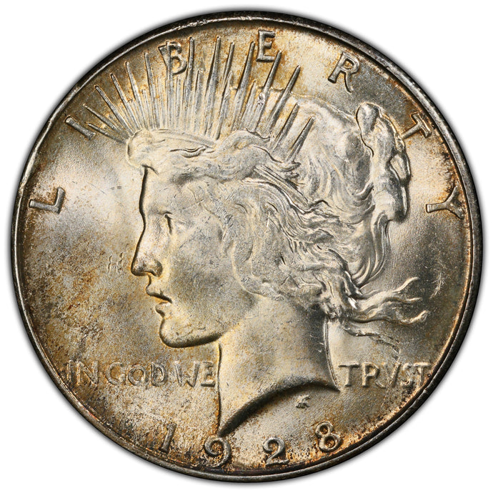 1928-S $1 Peace Dollar PCGS MS64 -- Lustrous w/ Minor Gold Peripheral Toning